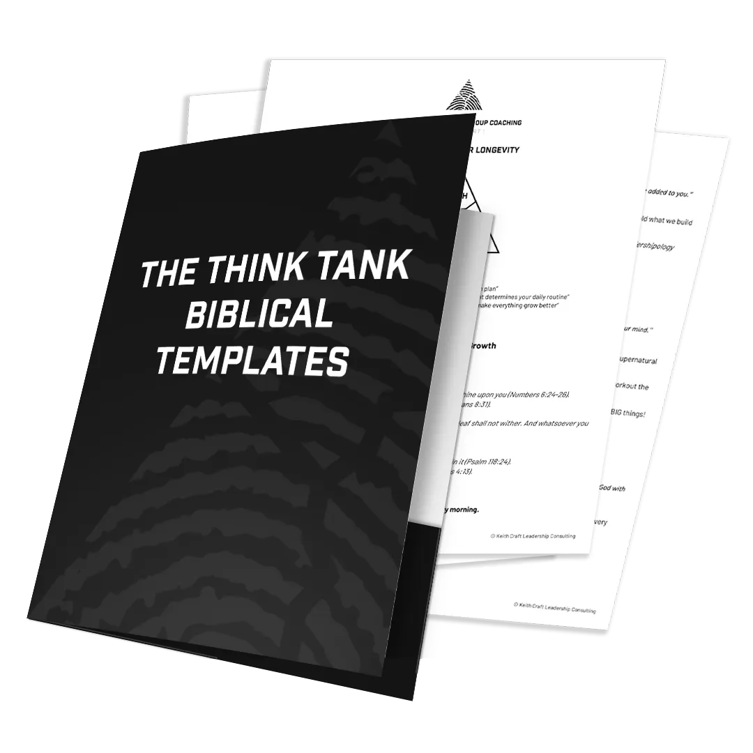 Rooted in scripture, the Think Tank uses God’s wisdom as the foundation for growth. Coaching sessions, templates, and resources apply biblical truth to leadership, relationships, and decision-making, aligning your life with God’s purpose.